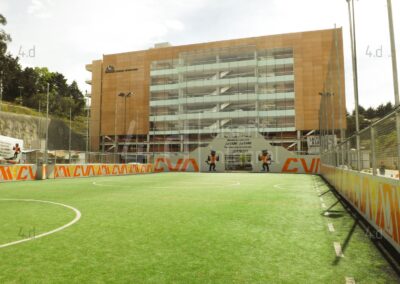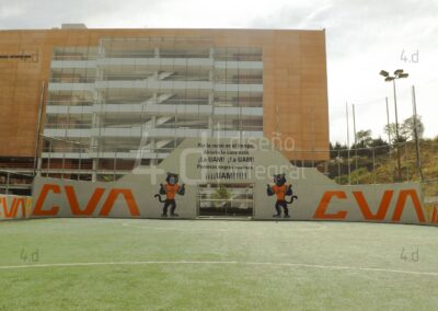 El resultado final fue un espacio deportivo renovado y visualmente atractivo, que refuerza la identidad gráfica de la Universidad y enriquece la experiencia de los usuarios. La intervención no solo revitalizó el entorno físico, sino que también fortaleció el vínculo emocional de la comunidad con su institución a través del diseño.