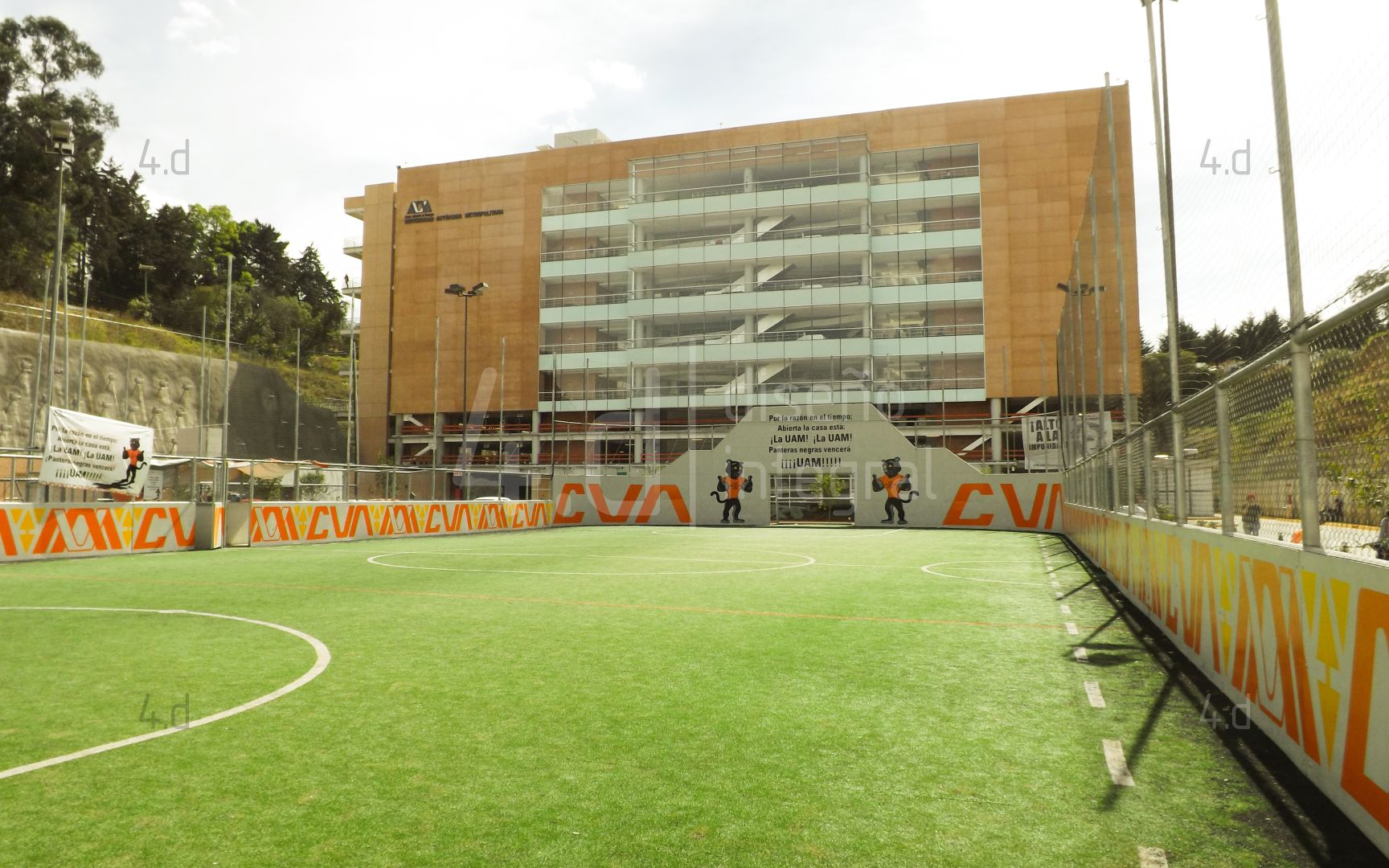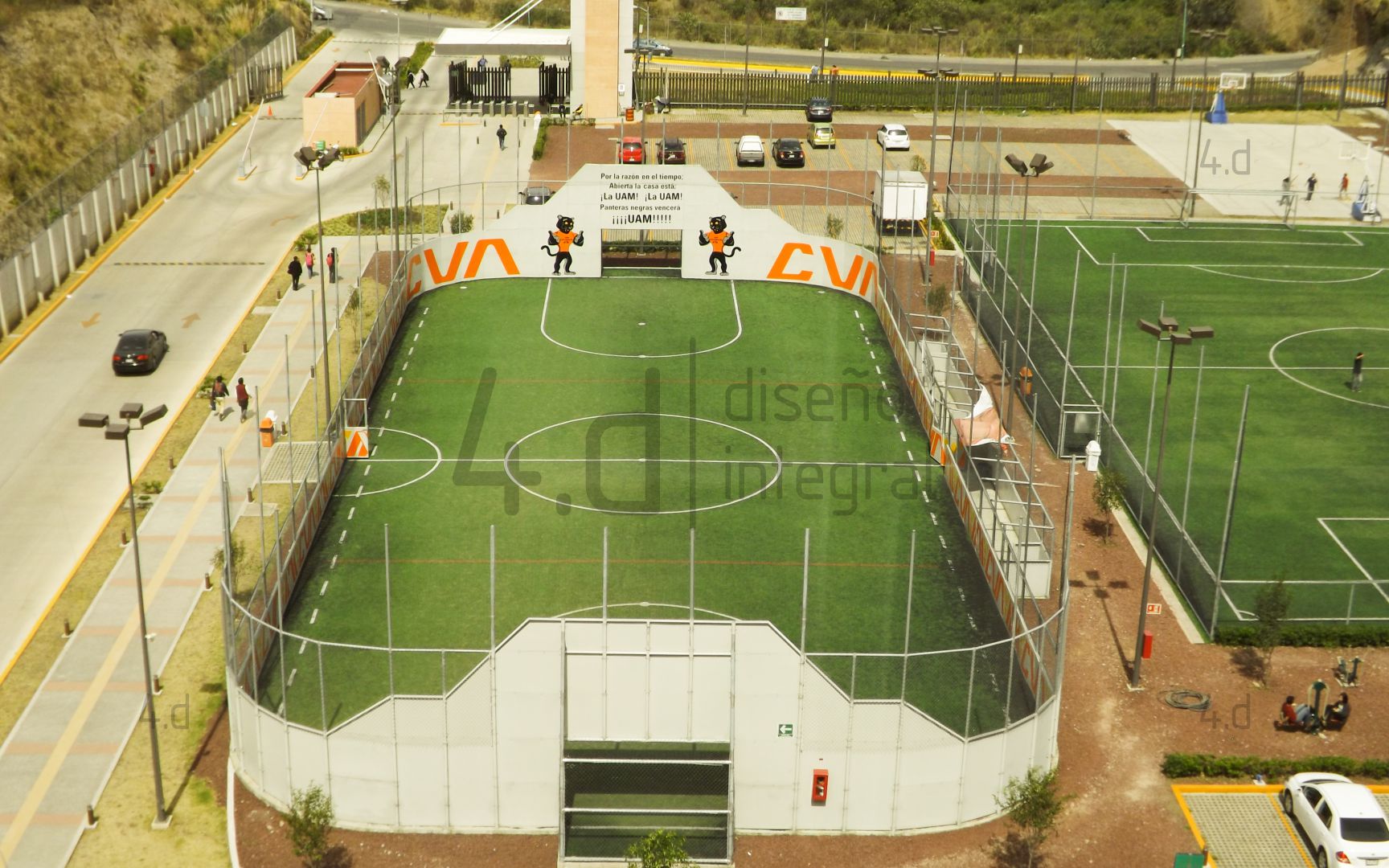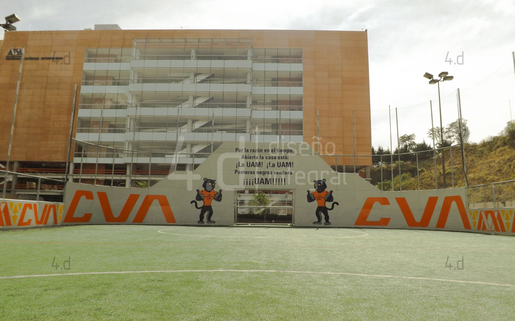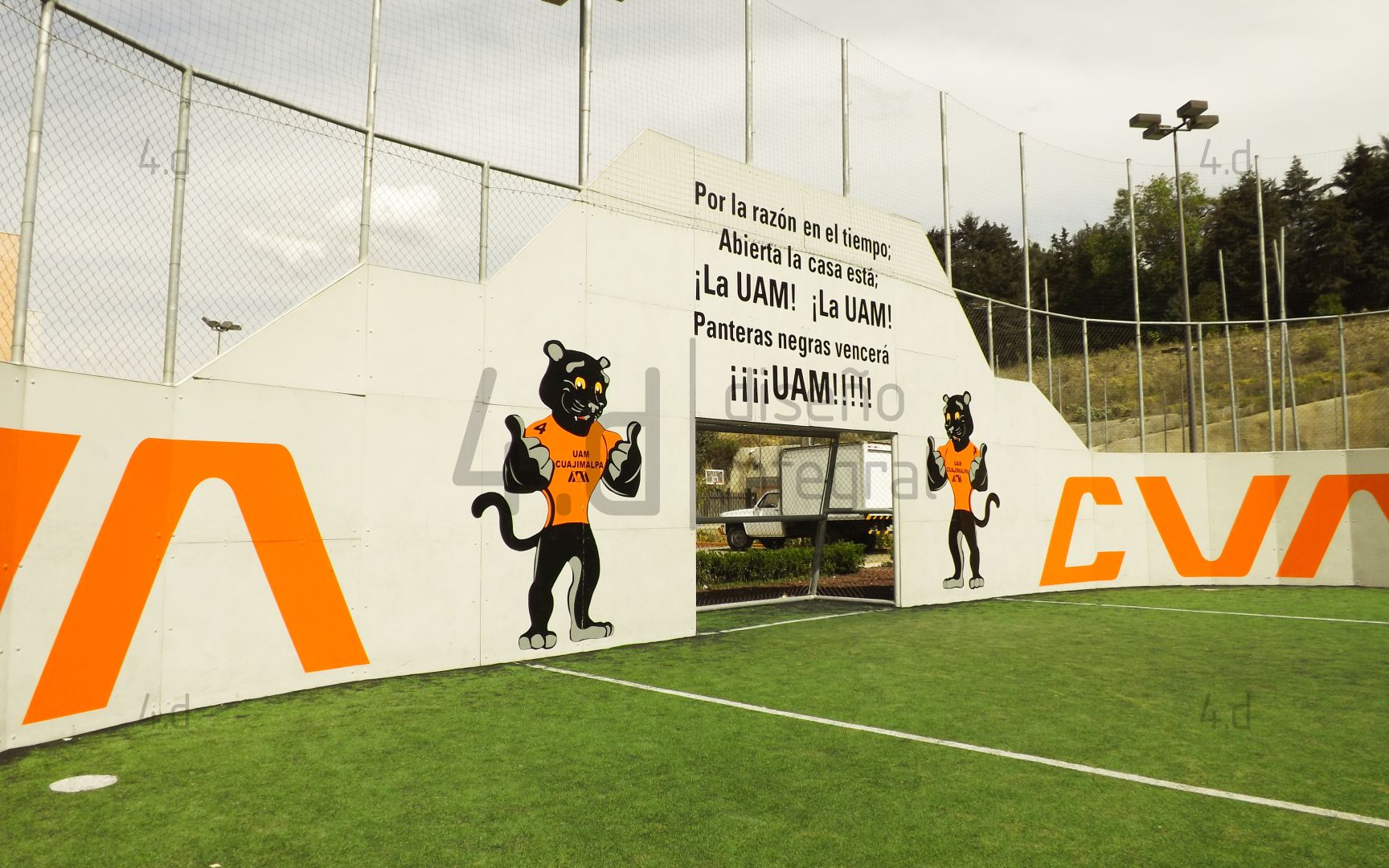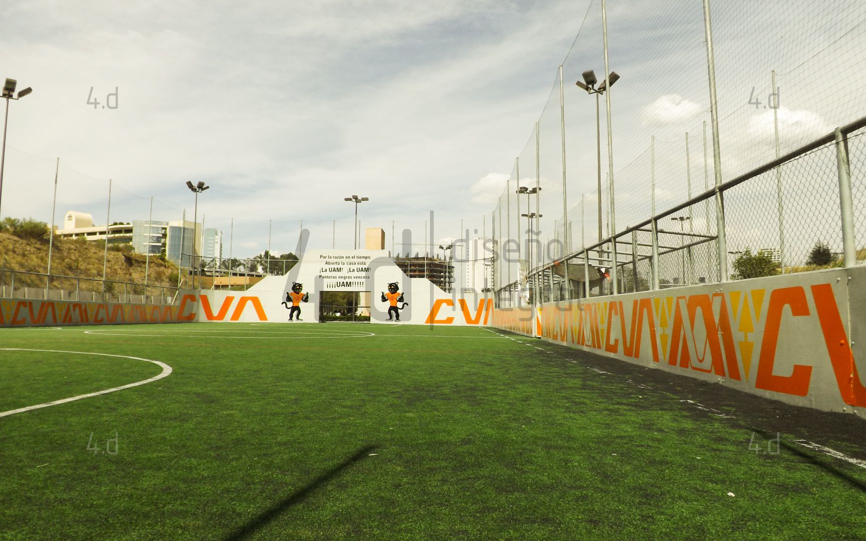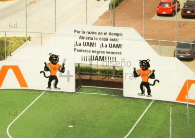 El proyecto consistió en el diseño gráfico y la intervención visual de las canchas de fútbol rápido de la Universidad Autónoma Metropolitana, con el propósito de fortalecer la identidad institucional mediante el uso de la mascota oficial, Oncahui, y promover la práctica deportiva dentro de la comunidad universitaria.