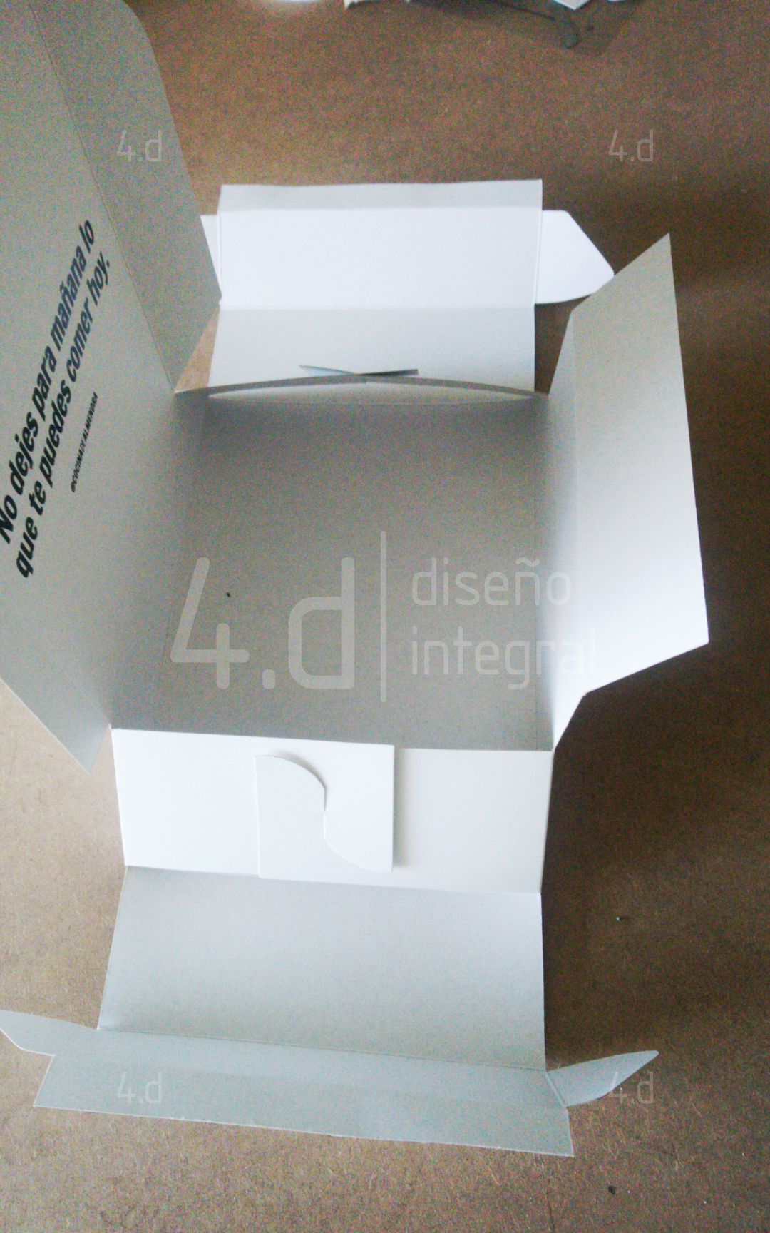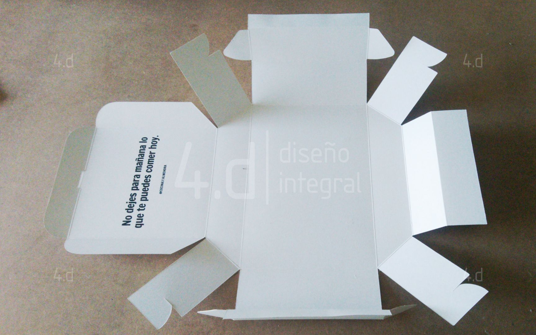 El diseño se originó desde la construcción de planos, estableciendo líneas de corte y doblez precisas para asegurar un armado claro y consistente. Se empleó cartón caple por su rigidez y tacto, además de su buen comportamiento en procesos de corte y estampado.