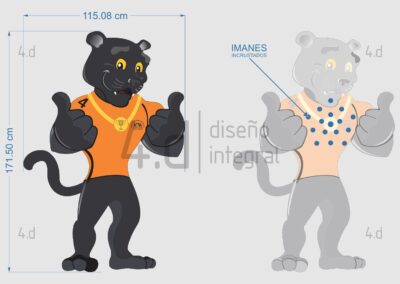 Se realizaron cortes precisos al contorno de la silueta para mantener exactamente la forma de la pantera. Posteriormente, para asegurar la funcionalidad del sistema magnético, se incrustaron más de 15 imanes de neodimio distribuidos alrededor de la zona de la medalla. Estos se fijaron con adhesivo, colocados en cavidades fresadas en la parte posterior del MDF, los cuales fueron resanados y lijados para mantener una superficie uniforme e imperceptible.