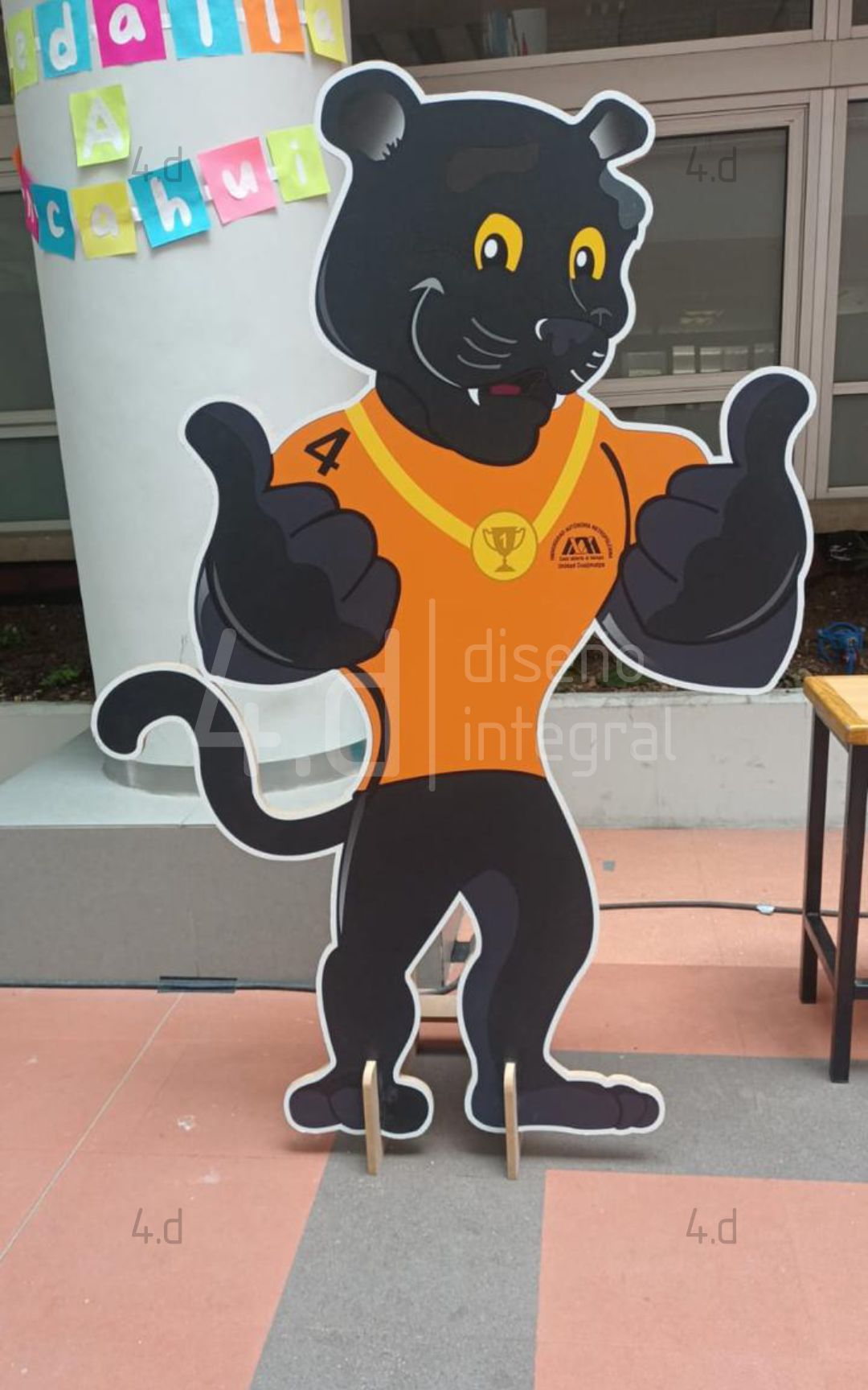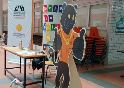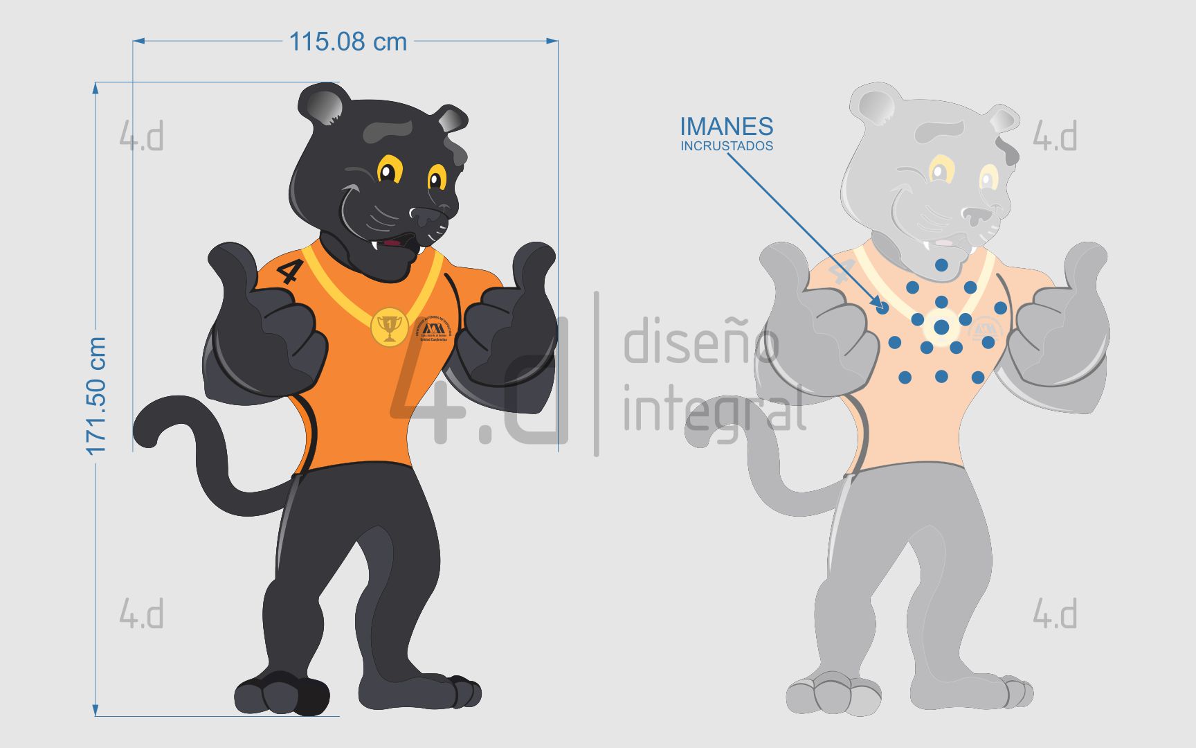 Las medallas se fabricaron en metal con acabado liso y se recubrieron con una impresión en adhesivo con laminado mate, lo que las protege del desgaste. Este material proporciona una buena atracción magnética, sin comprometer el acabado visual. Para garantizar la estabilidad, se diseñó una base estructural fabricada en el mismo material que la figura lo que permite soportar la manipulación continua durante las actividades del PIU.