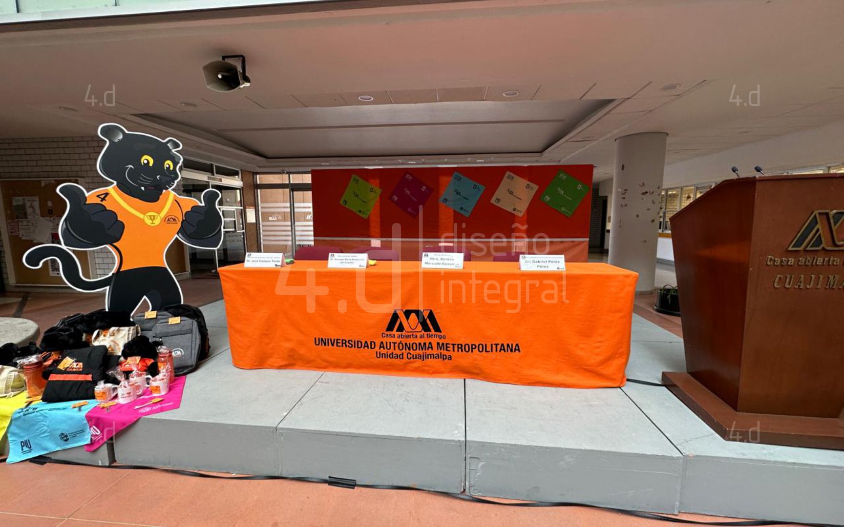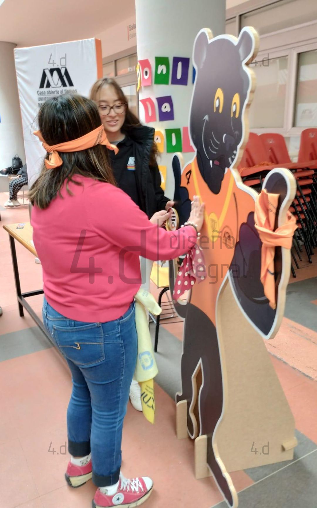 Tomando como referencia el tradicional juego infantil, se buscó reinterpretarlo, para ello, se sustituyó la figura del burro por la Pantera Oncahui, la mascota institucional, y el elemento de la “cola” por una medalla, que los participantes deben pegar. Las medallas, elaboradas en metal, incorporaron distintos diseños, entre ellos el logotipo del PIU, los nombres de los Licenciaturas, Posgrados y un emblema de “primer lugar”.