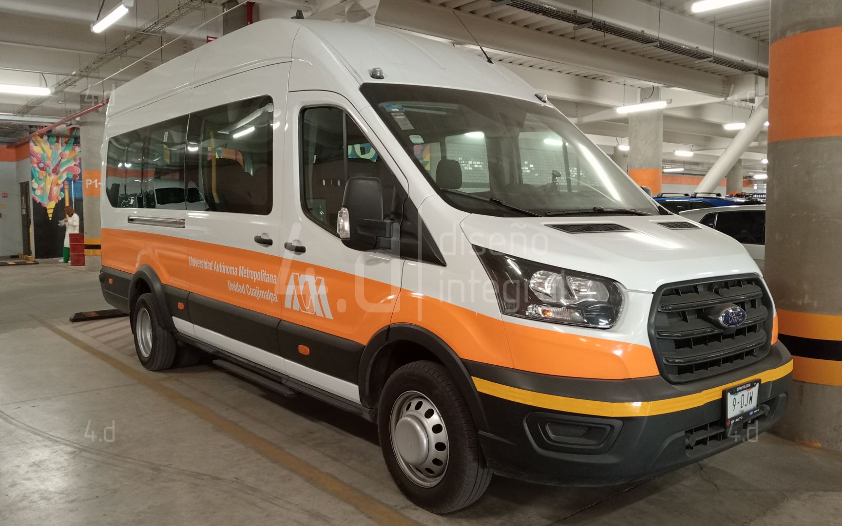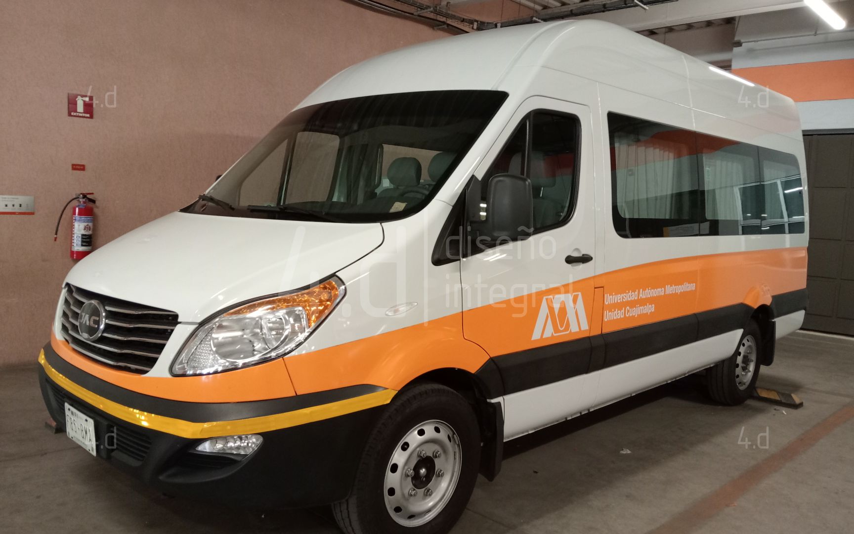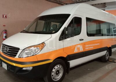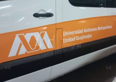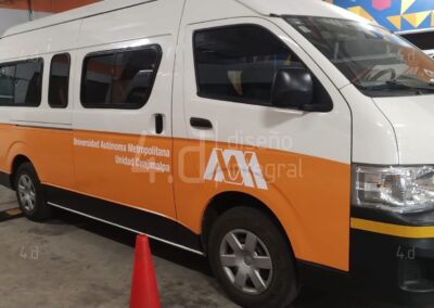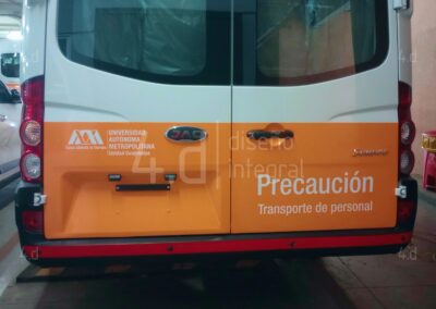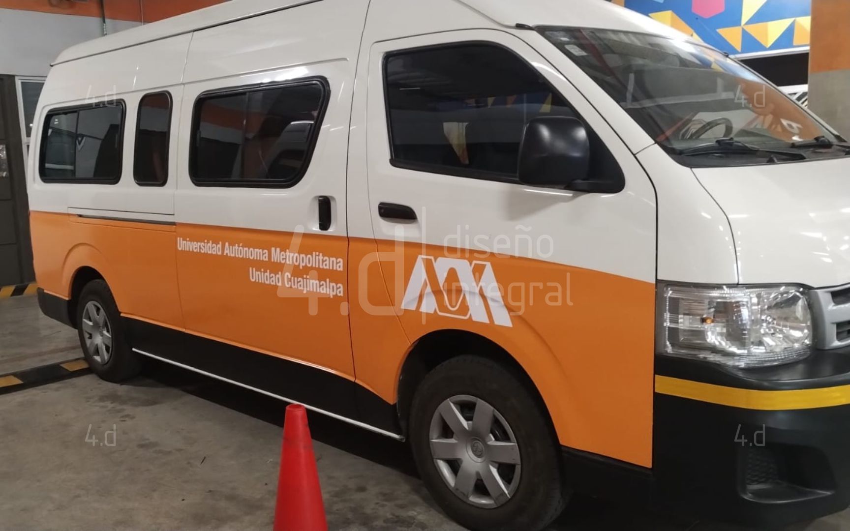 Rotulación limpia y precisa, que unifica la imagen de todas las unidades de transporte de la UAM Cuajimalpa, aportando claridad visual y reforzando la presencia institucional dentro y fuera de la Universidad.