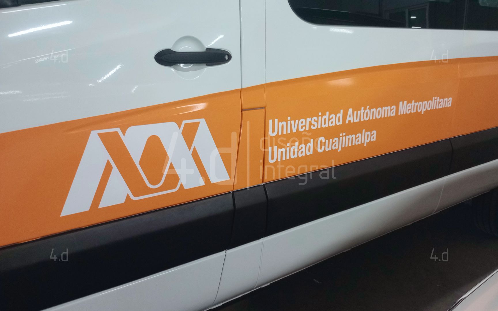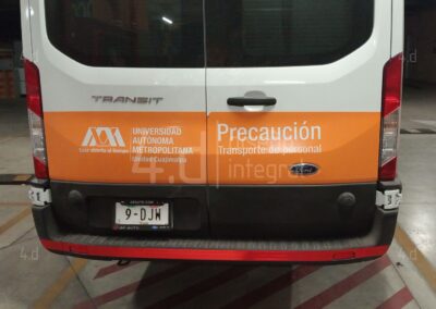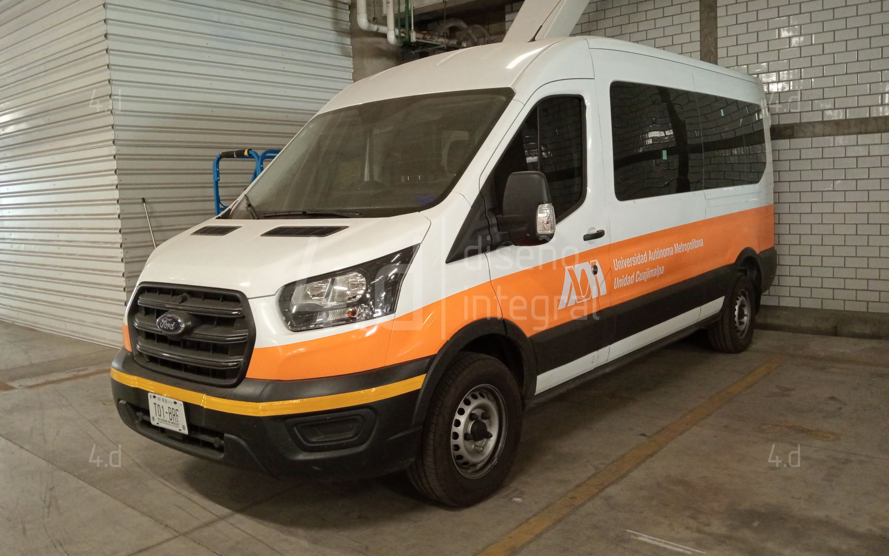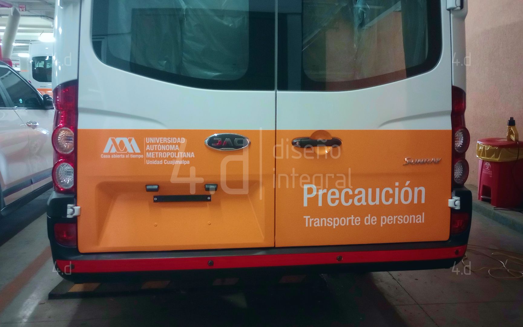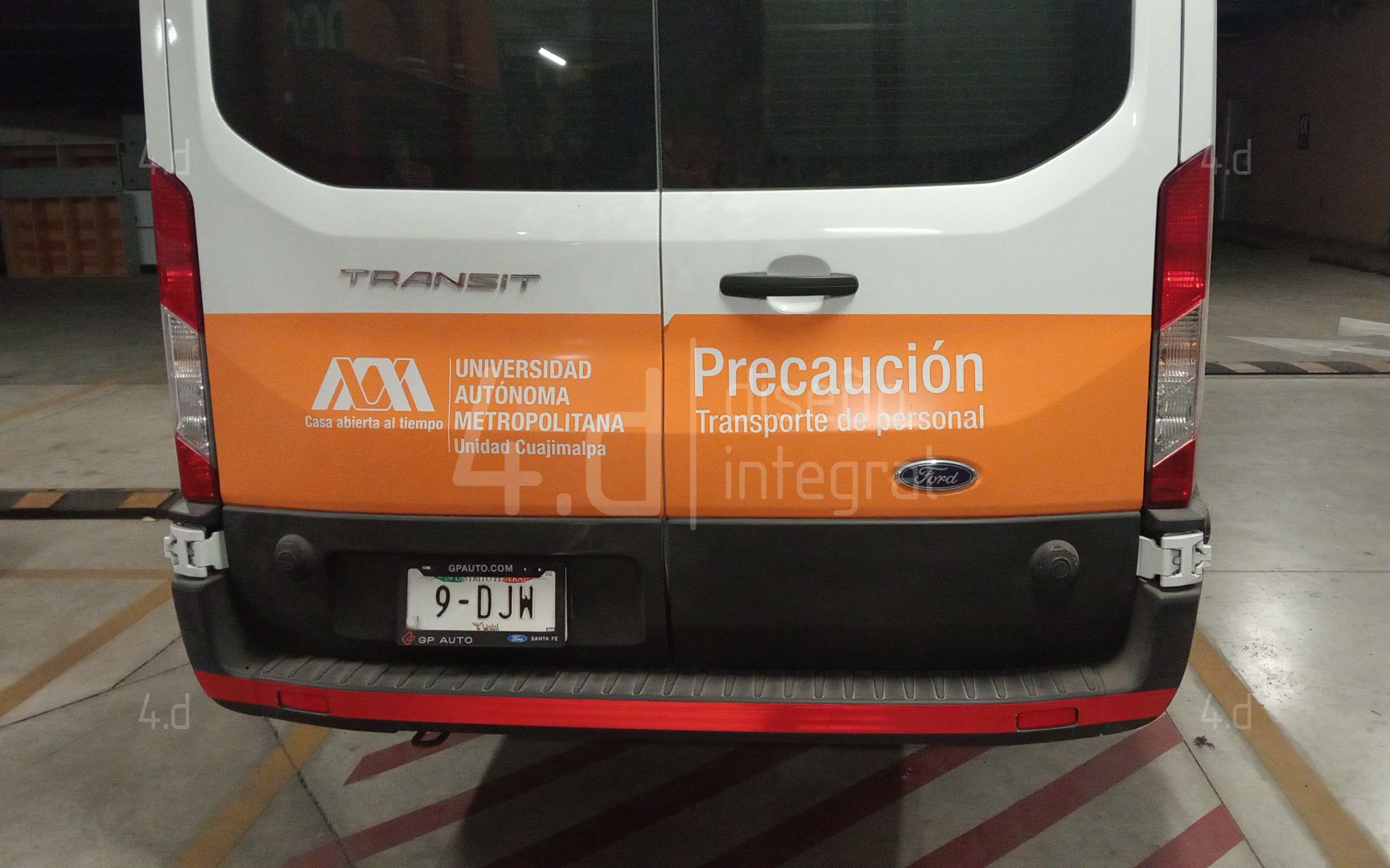 Rotulación limpia y precisa, que unifica la imagen de todas las unidades de transporte de la UAM Cuajimalpa, aportando claridad visual y reforzando la presencia institucional dentro y fuera de la Universidad.