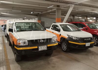 Durante la instalación, el vinil fue aplicado con pistolas de aire caliente para asegurar su correcta adherencia sobre las superficies metálicas y curvadas, evitando burbujas, pliegues o imperfecciones y asegurando un acabado limpio. Asimismo, se colocó cinta reflejante 3M, en color amarillo para las zonas frontales y rojo para la parte trasera de las camionetas, cumpliendo con las normas de seguridad vial y aumentando la visibilidad en condiciones de baja iluminación.